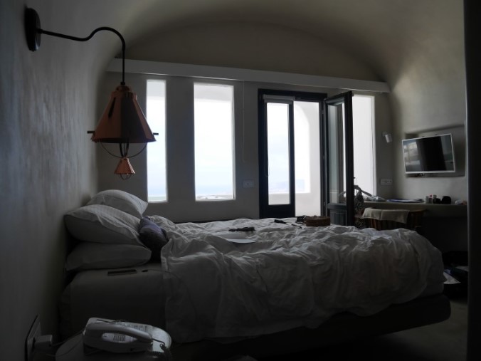 (산토리니-안드로니스럭셔리부티끄, 이아마을에 위치, 디테일한 서비스와 조식이 대박이다. 웰컴샹그리아가 나오고,웰컴샴페인이 제공된다. 침대가 좋고, 베개도 쿠션타입에 따라 선택을 할 수 있다. 직원들이 손편지를 주고, 자체 수비니어도 한봉지 챙겨준다. 조식은 가지수가 무척이나 많다는 것. 그치만 생각보다 럭셔리하지 않다는 것이 문제, 오래된 건물에 덧칠만 해서 그런지 실내자쿠지에서 수영하고 나왔더니 검정페인트가 수영복에 다 묻어나왔다.)